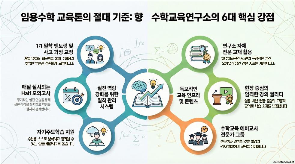 - 연구소 자체 전문 교재 활용 시중 교재와는 비교할 수 없습니다. 향수학교육연구소만의 독점적인 분석 노하우가 집약된 전문 자료를 통해 가장 효율적인 학습을 지원합니다.